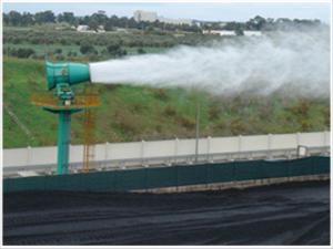 ? 對容易引起塵埃的堆場噴水除塵時,噴出的霧粒細小、與飄起的塵埃接觸時,形成一種潮濕霧狀體,能快速將塵埃抑制降沉;